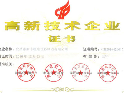 新豐機電榮獲高新技術(shù)企業(yè)證書