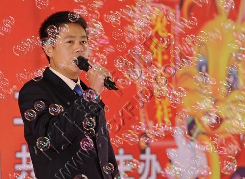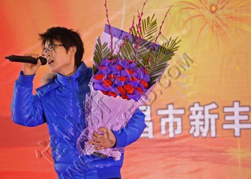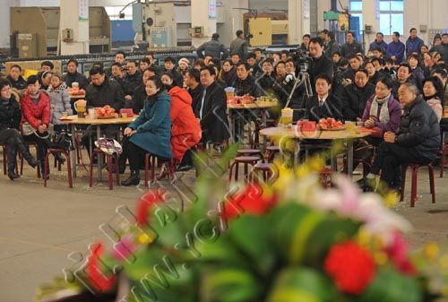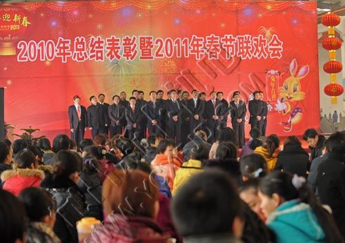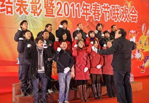 1月24日,宜昌市新豐機電設備制造有限公司董事長張本新攜夫人在表演文藝節目。當天,該公司舉行表彰和聯歡會,400多名公司員工和家屬歡聚一堂,喜迎新年的到來。